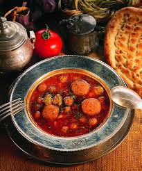 Akşamdan ıslatılmış nohut, et, biber, domates salçası ve küp şeklinde doğranmış 1 adet soğanı bir tencereye alın. Üzerini kapatacak kadar su ve tuz ilave ederek pişirin. Başka bir kapta az yağlı kıymayı suyunu bırakıncaya kadar kavurun. Küp şeklinde kesilmiş 2 adet soğanı da kıymaya ilave ederek kavurmaya devam edin. Tuz, karabiber ve cevizi ilave edin ve soğumaya bırakın. Çiğköftelik kıyma, ince bulgur, tuz ve karabiberi az su ilavesiyle macun kıvamına gelecek şekilde yoğurun. Hazırladığınız bu harcın bir kısmını ayırdıktan sonra misket büyüklüğünde köfteler yapın. Kalan kısmından ceviz büyüklüğünde parçalar kopartarak içini oyduktan sonra içli köfte yapar gibi içine cevizli harçtan ilave ederek kapatın. Köfteleri bir süzgece alın. İçinde su kaynayan bir tencereye bu süzgeci yerleştirin. Bir süre haşladıktan sonra, daha önce hazırlamış olduğunuz salçalı et suyuna süzerek alın. 2 limonun suyunu sıkın. Tereyağını eritin, naneyi yağda biraz çevirin ve yemeğinizin üzerine döktükten sonra servis yapın